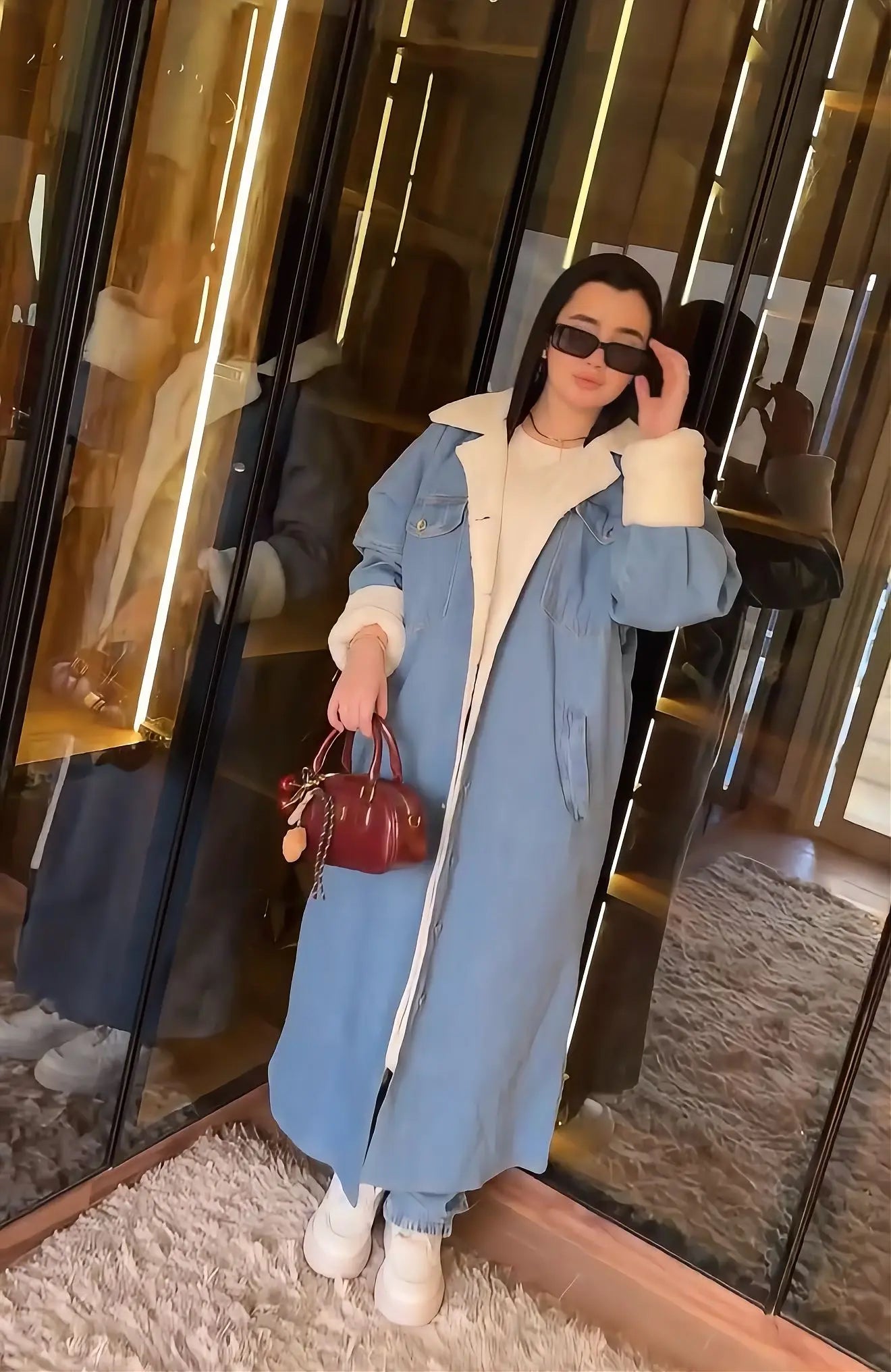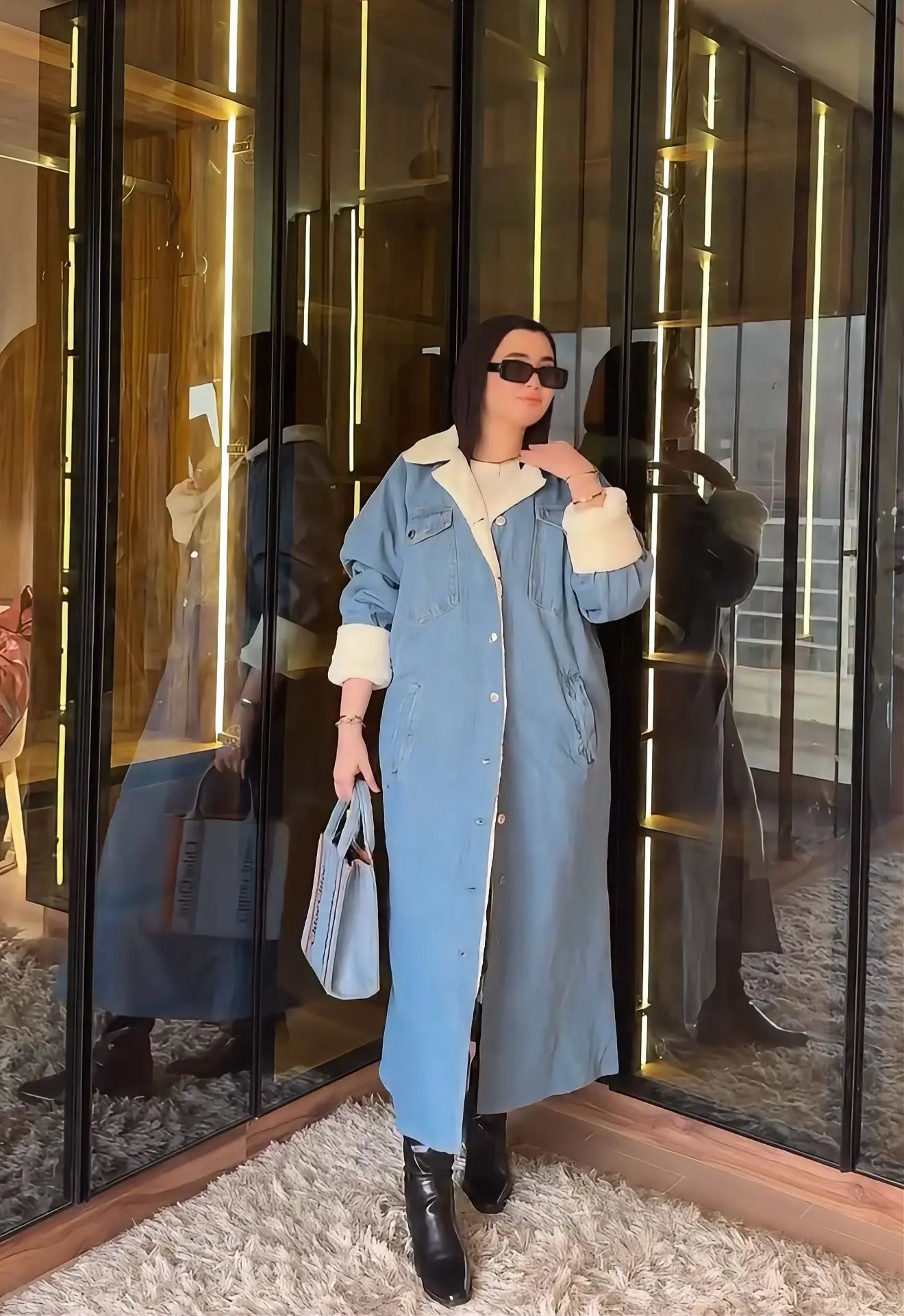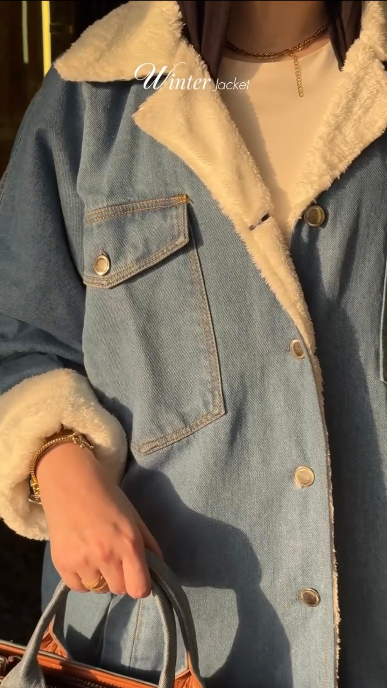 Imported sushi-wash denim jacket, fully lined with soft fur for extra warmth and style.”